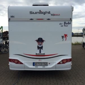 Wir reisen zusammen mit unserem Parson Jack Russel Terrier mit Namen „Bootsmann“und unserem treuen Stoffbegleiter „Bubi Hund “ in einem Sunlight T 68 aus dem Jahr 2015.